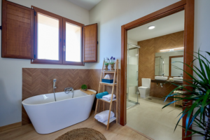 O apartamento tem 3 quartos, TV de tela plana, cozinha equipada com lava-louças e micro-ondas, máquina de lavar e 3 banheiros com chuveiro. Toalhas e roupa de cama são fornecidas.